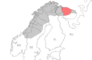 ![]() Kildin Sami language area (red) within Sápmi (grey) | |