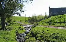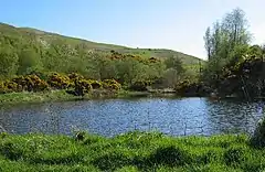 Kilham stands on the south bank of the Bowmont Water in Glendale, at the mouth of Kilham Burn. Settlement is limited to dispersed farmsteads and small hamlets, of which Kilham is the largest.[29] Glendale has a clearly defined valley floor and pronounced raised terraces. The area is relatively well wooded, with both coniferous plantations and broadleaved woodland on the surrounding hills, and areas of alder woodland and pollarded willow along the valley floor.[30] The river forms part of the River Tweed Site of Special Scientific Interest, designated in 2001 due to its biological interest, and the River Tweed Special Area of Conservation, designated under the European Habitats Directive for the biological interest within the river system.[31]