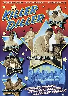 Killer Diller is a 1948 American musical comedy race film[1] directed by Josh Binney and released by All American.[2] Academic and comedienne Eddie Tafoya wrote that "Killer Diller is really more concerned with showcasing black talent appearing at Harlem's legendary Apollo Theater than it is with providing audiences with a satisfying story."[3] The movie features The Clark Brothers (tap dancers), Nat King Cole, Moms Mabley, Dusty Fletcher, Butterfly McQueen, the Andy Kirk Orchestra and the Four Congaroos (dancing the Lindy Hop). René J. Hall was the film’s arranger.[4]