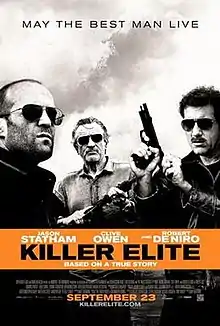 Killer Elite is a 2011 action thriller film starring Jason Statham, Clive Owen and Robert De Niro. The film is based on the 1991 novel The Feather Men by Sir Ranulph Fiennes and is directed by Gary McKendry.