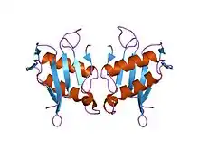 Killer toxins are polypeptides secreted by some fungal species ("killer yeasts") that kill sensitive cells of the same or related species, often functioning by creating pores in target cell membranes. The fungal killer toxin KP4 from the corn smut fungus, Ustilago maydis (Smut fungus), is encoded by a resident symbiotic double-stranded RNA virus, Ustilago maydis P4 virus (UmV4), within fungal cells. Unlike most killer toxins, KP4 is a single polypeptide.[1] KP4 inhibits voltage-gated calcium channels in mammalian cells, which in turn inhibits cell growth and division by blocking calcium import. KP4 adopts a structure consisting of a two-layer alpha/beta sandwich with a left-handed crossover.[2]
