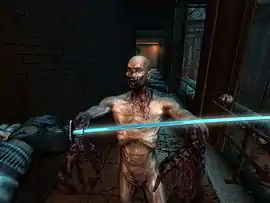 Killing Floor is a first-person shooter with two game modes: Killing Floor and Objective. In Killing Floor mode, the player fights waves of zombie-like specimens - or ZEDs - with each wave becoming successively more difficult, until it concludes with a battle against a "boss" specimen called the Patriarch.[6] In Objective mode players complete different challenges while earning in-game money, which they can spend between waves at a trader. The trader buys and sells ammo, armor, and weapons, such as katanas, pipe bombs, flamethrowers and shotguns. Weapons can also be found randomly across the level. Players are encouraged to work together; they can trade items and drop money, healing is more effective on other players than on oneself, and the team can strategically weld doors shut to provide a temporary barrier from the oncoming horde while funneling the other creatures to specific areas.
