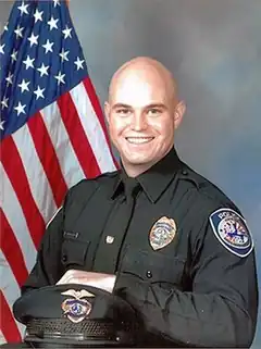 Amy then called 9-1-1, only to learn from the dispatcher that the police had already been at the house for some time. Her husband's bullet had struck Heidelberg in the wrist and chest, just outside the bulletproof vest he was wearing.[2] He told another responding officer that he thought he was alright, then collapsed. Heidelberg's fellow officers administered first aid to him. Believing that the situation was too critical to wait for an ambulance, they took him in a police car to Midland Memorial Hospital,[6] where further efforts to save him were futile. He was pronounced dead at 2:30 a.m.[9]