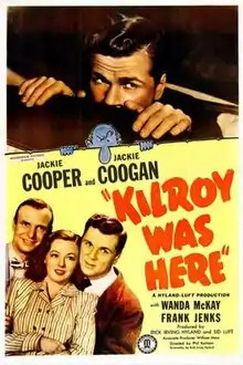 Kilroy Was Here is a 1947 American comedy film directed by Phil Karlson and written by Dick Irving Hyland. The film stars Jackie Cooper, Jackie Coogan, Wanda McKay, Frank Jenks, Norman Phillips Jr. and Rand Brooks. The film was released on July 19, 1947, by Monogram Pictures.[1][2][3]