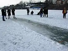 The Kilt and Clover is a restaurant and bar located at 17 Lock Street in Port Dalhousie, Ontario, a district within the City of St. Catharines, Ontario on the shores of Lake Ontario. It is known for its annual frozen chicken chucking competition. The act of chicken chucking consists of pitching or sliding frozen chickens along the ice covered Martindale Pond similar to curling and shuffleboard.[1]