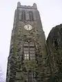 The tower of the old abbey fell in 1814, however it was rebuilt on a smaller scale by Messrs Connell of Dalgarven, who also built the Eglinton Tournament Bridge, the architect being David Hamilton.[8] Considerable restorations were made on the choir of the abbey church and in parts of the nave in 1814.[9]