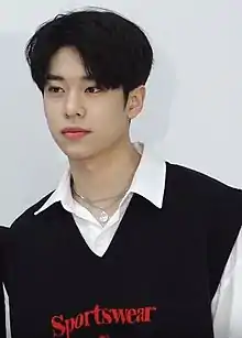 Kim Dong-hyun was born on September 17, 1998, in Daejeon, South Korea.[1] He has an older brother, an older sister, and an older fraternal twin brother, making him the youngest person in his family.[2] Prior to appearing on Produce 101 Season 2, Kim has trained for eleven months.[3] He was a trainee at JYP Entertainment before he passed Brand New Music's audition and joined them as a trainee on late 2016.[4][5]