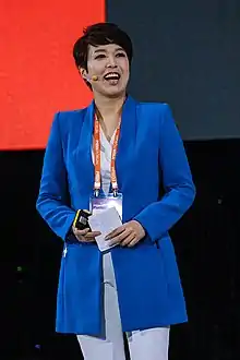 On 14 May 2021, Kim announced her campaign to become the President of the People Power Party (PPP) that was vacant following the resignation of Hwang Kyo-ahn.[24][25] She indicated that the party needs a "revolutionary change" to win the 2022 presidential election.[24][25] She promised to adopt a youth quota system for the party.[24][25]