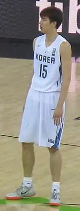 Kim participated in the 2014 FIBA Basketball World Cup.[16] Later that year, he was called up for the 2014 Asian Games hosted at home. The team won the gold medal, the first since 2002, and Kim and other teammates who had yet to serve their mandatory military service were granted exemptions.[17]