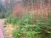 Kindrogan Estate was anciently the property of the Robertson and Reid families. Later it was owned by the Small Keir family, passing by marriage from the Small's of Dirnanean and then through the marriage of Jane Amelia Keir to Captain Francis Balfour of Fernie Castle in Fife to the Balfour family. The Balfours purchased Dirnanean in 1926, and upon the marriage of Francis to Katherine Dolby in 1930 they moved residence to that estate, letting Kindrogan to Sir George and Lady Dolby for their summer home. The Balfours returned to Kindrogan after WWII and remained until 1960 when the estate was purchased by the Forestry Commission, and sold on to the current owners, the Scottish Field Studies Association in 1963[1] after a short spell as a country house hotel. The family or laird's graveyard lies on the slopes of Kindrogan Hill.