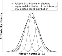The distribution of photon count probabilities can be used to estimate the expected value (E(D)) and the variance (Var(D)) of the attenuation:[1][2]