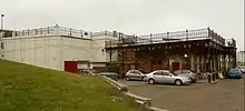 In 1913 the Pavilion was developed as a memorial to the late King Edward VII. The architect was again the Council surveyor F.W.J. Palmer who presented his plans in April 1911. The Council applied to the Local Government Board (LGB) for a loan,[33] and the work cost £6,000: £5,000 for the excavation and construction; £1,000 for furnishings. £5,956 was received from the LGB in August 1912.[2] The builders were Hardy & Co. of Woking whose tender of £5,578 on 16 September 1912 was accepted for the erection work, and one of the contractors was electricity company Hunt & Sons of Charles Street, Herne Bay, who ran a cable underground from their works, beneath Canterbury Road and through the cliff.[2][6] The entertainers Rouse, Way & Wilson made an advance investment of £700 in the theatre, the profits to be shared by the Council. The excavation commenced in October 1912, and "many thousands of yards of London Clay" were removed to extend the building into the cliff.[2] The 1904 building was incorporated and extended as a theatre, concert hall and dance hall below the Downs on East Cliff, and the existing small auditorium became the vestibule for the new hall. The 1913 Hall was designed to accommodate 1,500, with 1,100 in the open-air theatre on the roof.[2] The high price for this build partly reflects the large excavation into the cliff for the Hall, and the early use of ferro-concrete, with steel bars made by the Spiral Bond Bar Company, who had patented the process that they used in the same year.[6][34] The building was specially designed not to interfere with the view from houses on Beacon Hill to the south; nevertheless a 60 feet (18 m) flagstaff was erected between the Hall and the Beacon Hill estate.[2]