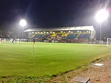The club took over the Walks ground from King's Lynn, who had played there since being formed in 1881. Canvas screens were erected around the ground in 1892 to prevent people watching matches without paying.[2] In 1893 a match was played against Wisbech Town under electric lights.[2] A stand was built in 1896, although it was demolished in 1905, replaced by a 500-seat wooden grandstand built at a cost of £250.[2] In the mid-1950s the Supporters Club installed terracing for 4,000 and 780 seats on the northern side of the pitch. In 1955 the wooden stand was sold to a company in Spalding and a new grandstand seating 1,400 with a terraced paddock holding 3,000 was built at a cost of £27,000 and opened by then FIFA President and FA Chairman Arthur Drewry on 18 August 1956.[2]