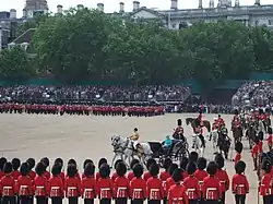 The day is marked in London by the ceremony of Trooping the Colour, which is also known as the King's Birthday Parade.[53] The list of Birthday Honours is also announced at the time of the Official Birthday celebrations.[54] In British diplomatic missions, the day is treated as the national day of the United Kingdom. Although it is not celebrated as a specific public holiday in the UK, some civil servants are given a "privilege day" at this time of year, which is normally merged with the Spring bank holiday (last Monday in May) to create a four-day weekend. The King's birthday is the last remaining privilege day, the other 1.5 days having been abolished in 2014 and replaced by a 1.5 day increase in civil servants' annual leave.[55]