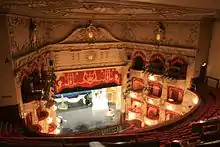 As you enter the foyers, an arrangement of mahogany, heavily carved door frames, stained glass, pilasters with marble and parquet floors greets you. The auditorium originally had seating for 2,500, with tip up seats in the stalls and circles, and upholstered benches with metal arm rests in the top Balcony. After a number of alterations the auditorium now seats 1,350, just over half the original capacity. The design in the auditorium is a feast for the eyes. The boxes are arranged over three levels, and are tiered neatly on top of each other. The sight lines in the theatre were poor as the architects were not as experienced as others in the same field. Some of the boxes had abysmal views of the stage, and the Balcony looked out on the plasterwork above the proscenium rather than the stage itself. These were however, small criticisms as the theatre's qualities far outweighed the faults.