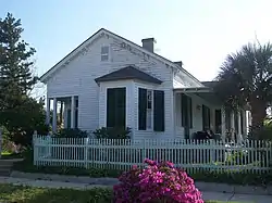 The King-Hooton House is an 1871, 1+1⁄2-story, frame vernacular residence, with an attached kitchen wing. Originally built as a single dwelling, it was converted into a duplex in the mid-1950s. It was built by a local carpenter for Margaret E. King, one of Pensacola's most prominent real estate holders in the late nineteenth century. It has three interior, stuccoed, brick chimneys which pierce front gabled roofs; an inset porch at the main entrance; and an attached hip roofed porch on the south elevation. Paired brackets accent the eaves of the main house. A bay window dominates the main facade; nearly all of the other windows are wooden, double hung, 6/6 sash. There are two jib windows. Sixteen pairs of original, wooden, louvered shutters remain intact and are operable. [2]