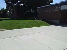 The school was not officially opened until a ceremony on 6 April 1962 at which M.A. Cullen presented the school's vice-principal John Turchin with an engraved key and school board representative Marvin Hunter donated a bible to the school.[6] Major renovations to the building were implemented that year, funded with a Can$668,190 grant from the Government of Canada and Can$890,000 from the Government of Ontario.[6] This resulted in the addition of a teacher's cafeteria in 1962 and a technical studies area in 1963, often referred to as the Tech Wing,[7] on the southwestern part of the school.[6] In 1966, a third gymnasium and a library were added as an eastern wing to the main building.[7] In 1983, the school's heating system was converted to use natural gas instead of oil, partly spurred by concerns of the expected cost of heating the large structure after the 1970s energy crisis.[6] In 1991, a new library facility was constructed adjacent to the Tech Wing, which also resulted in the creation of an inner courtyard.[7] The north courtyard was converted to a student memorial.[6] In 2007, construction of a new science department was completed.[6]