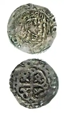 In 1093, King Malcolm and David's brother Edward were killed at the River Aln during an invasion of Northumberland.[6] David and his two brothers Alexander and Edgar were probably present when their mother died shortly afterwards.[7] According to later medieval tradition, the three brothers were in Edinburgh when they were besieged by their paternal uncle Donald III,[8] who made himself king.[9] It is not certain what happened next, but an insertion in the Chronicle of Melrose states that Donald forced his three nephews into exile, although he was allied with another of his nephews, Edmund.[10] John of Fordun wrote, centuries later, that an escort into England was arranged for them by their maternal uncle Edgar Ætheling.[11]