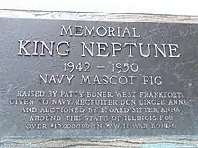 King Neptune (May 16, 1942 – May 14, 1950) was a pig used by a United States Navy recruiter to raise $19 million in war bonds (over $308 million in 2019 adjusted for inflation[1]) for the construction of theIowa-class battleship Illinois between 1942 and 1946.