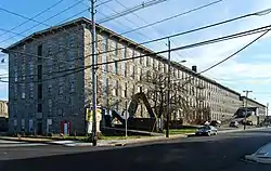 The King Philip Mill was organized with $500,000 in capital in 1871 and Mill No. 1 was built the same year. In 1881, capital was increased to $1,000,000 and Mill No. 2 was built. Mill No. 3 was added in 1888 for weaving. Mill No. 4 was built in 1892.[3] The architectural design for the buildings was by William F. Sherman and F.P. Sheldon; the latter was a prominent mill designer from Providence, Rhode Island.[2] By 1917 the company had a capacity of 134,000 spindles and 3,000 looms.[4] In 1930 the company was acquired by Berkshire Fine Spinning Associates which later became Berkshire Hathaway.[5] Textile production ended on May 8, 1964,[6] and the complex was used by a variety of light industrial concerns.[2]