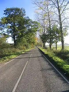 ![]() Tree-lined avenue, King Street, Essex, looking east. King Street is both the name of the road and the small hamlet nearby. | |