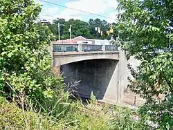 King Street Overhead Bridge is a historic overhead bridge located at Kings Mountain, Cleveland County, North Carolina. It was built in 1938–1939, and is a reinforced concrete Moderne-style rigid-frame vehicular bridge. It measures about 48 feet long and 49 feet wide and carries West King Street over the Norfolk Southern Railway railroad tracks.[2]