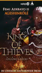 King of Thieves (Ògúndábède) is a story of a famous town and prosperous kingdom of Ajeromi, things were going as good as they should be in the Ajeromi kingdom until Agesinkole, a powerful bandit and terrorist came to terrorize the peaceful and prosperous kingdom of Ajeromi, the Ajeromi Kingdom however sought to destroy this Agesinkole bandit with just every power within them including their hunters, witches, wizard and every power they possess.[8]