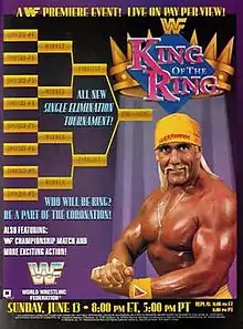 The King of the Ring tournament is a single-elimination tournament that was established by the World Wrestling Federation (WWF, now WWE) in 1985 with the winner being crowned the "King of the Ring." It was held annually until 1991, with the exception of 1990. These early tournaments were held as special non-televised house shows in an effort to boost attendance at these events.[1] In 1993, the WWF began to produce the King of the Ring tournament as a self-titled pay-per-view (PPV). The inaugural PPV, which featured the seventh tournament, took place on June 13, 1993, at the Nutter Center in Dayton, Ohio. Unlike the previous non-televised events, the PPV did not feature all of the tournament's matches. Instead, several of the qualifying matches preceded the event with the final few matches then taking place at the pay-per-view. There were also other matches that took place at the event as it was a traditional three-hour pay-per-view.[2]