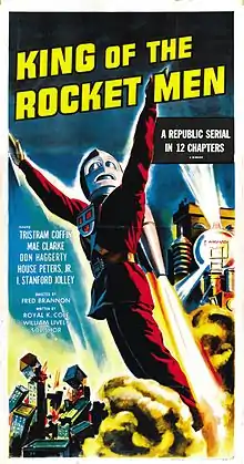 King of the Rocket Men is a 1949 12-chapter movie serial from Republic Pictures,[2] produced by Franklin Adreon, directed Fred C. Brannon, that stars Tristram Coffin, Mae Clarke, Don Haggerty, House Peters, Jr., James Craven, and I. Stanford Jolley.