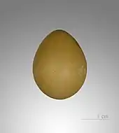 Females lay an egg a day if kept on the proper diet. Nesting sites can be as spartan as a quiet corner or a depression in the ground against a wall. Preferably, a clump of long grass, tea tree branches, or pile of loose herbage should be provided. Often, a hen lays eggs on the aviary floor without the use of a nest. This is a sign that the birds are not content with the existing facilities and the provision of a sheltered nest site may result in a nest being built. The cock usually selects the nest site.[10] The nest is a simple scrape in the ground, lined with grasses, and is built by the hen with some assistance from the cock. The eggs measuring 25 x 19mm are variable in colour from the palest of browns to dark olive and peppered with fine black spots. Clutch size varies from four to 13, but occasionally a hen can be found incubating upwards of 20 eggs. It is usually a combined clutch from a number of hens, and due to the difficulties of turning and covering a clutch of that size, hatching rate is often poor. Removing some of the eggs and artificially incubating or fostering them may be beneficial.[10]