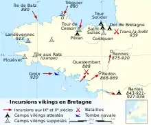 From 919, Brittany was completely occupied by the Norsemen, monasteries and cities were looted and many Bretons fled to neighbouring countries.