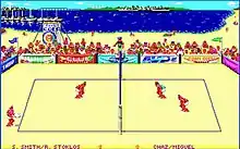 Kings of the Beach is a beach volleyball computer game released by Electronic Arts in 1988 for the Commodore 64 and MS-DOS.[2] A version for the Nintendo Entertainment System was produced by Konami (under the Ultra Games label) in 1990.