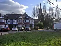 The centre of Kingsbury Green which is today around the Kingsbury Road/Church Lane crossing was historically the centre of Kingsbury in the 15th century, built 1 mile north from the former settlement at Blackbird Hill. To its south, Church Lane leads to the St Andrew's parish church, built in 1933.[13] In Slough Lane and Buck Lane there exist 1920s timbered houses designed by Ernest Trowbridge .[14]