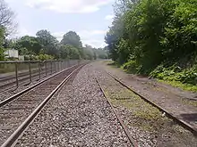 After several years of sharing railroad facilities, the Erie Railroad and Delaware, Lackawanna and Western Railroad merged on October 17, 1960, replaced by the Erie-Lackawanna Railway. Since 1949 the Erie Railroad had been dealing with the city of Passaic, New Jersey about its double track mainline through the city via Rutherford.[10] Due to the high cost of removing the main line with no back-up service, it was unable to progress forward, and as a result, the Erie built some new stations to replace old wooden ones in 1952.[11] With the railroad merger in 1960, the Erie–Lackawanna had the Boonton Branch that also served Passaic, and on August 23, 1960, with pressure from the New Jersey Department of Transportation to go ahead with it, a deal was struck between the city of Passaic and the railroad.[12] A new connection was to be made via the Erie's old Newark Branch to connect the Boonton Branch to the old Erie main at South Paterson. The old Erie main line through Passaic was abandoned at a ceremony on April 2, 1963, when service was terminated. Trains were re-routed via a "new" main line, using the Boonton Branch from Kingsland to Athenia.[8]