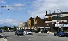 Kingsway is one of the longest roads in the Metropolitan Vancouver area and is therefore somewhat difficult to characterize. Many segments of the road offer diverse family-owned and ethnic shopping opportunities and restaurants – particularly Korean, Chinese, Vietnamese, Taiwanese, Japanese, and South Asian, among others. There are also a number of hotels, supermarkets, and freestanding fast-food locations along other portions of its route. The road forms the central commercial spine for Burnaby's Metrotown business district, and is the principal route between Metrotown and Downtown Vancouver.