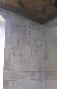 Some payments for building at Kinneil were recorded in the royal treasurer's accounts; timber for roofing, floors and panelling was sent by boat from Leith in 1549 and 1550 to complete one section.[14] Around this time Friar Mark composed a "History of the Hamiltons" for Regent Arran which connects his heraldry to an incident at Kinneil or "Borough Muir".[15][16]