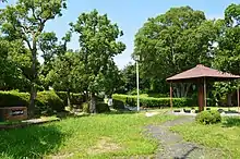 The Kinyakurumazuka Kofun (禁野車塚古墳) is a Kofun period keyhole-shaped burial mound, located in the Miyanosaka neighborhood of the city of Hirakata, Osaka in the Kansai region of Japan. The tumulus was designated a National Historic Site of Japan in 1972 with the area under protection expanded in 2007.[1]