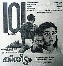 Kireedam (transl. Crown) is a 1989 Indian Malayalam-language action drama film directed by Sibi Malayil and written by A. K. Lohithadas. The film stars Mohanlal, Thilakan, and Parvathy Jayaram, along with Kaviyoor Ponnamma, Mohan Raj, Murali, Sreenath, Kundara Johny, Cochin Haneefa, Jagathy Sreekumar, Philomina, Usha, Jagadish, Maniyanpilla Raju, Mamukkoya, Oduvil Unnikrishnan, and Kanakalatha in supporting roles. The music for the film was composed by Johnson.