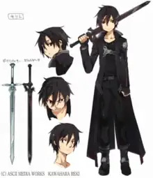 In an interview with Sword Art Online series creator Reki Kawahara, they wrote the series to change popular opinion of online gaming; viewing it not a social ill or just an escape from real life, and thus decided to show games in a more positive light in his light novels.[1] He stated that he does not usually put aspects of himself into his characters,[1] he did note that "neither of us are good at forming parties. We [both] tend to play solo in these games a lot."[2] When asked about Kirito using a sword in a gun-based game during the Gun Gale Online arc, Kawahara responded that the energy sword in Halo can be the most powerful weapon if used properly.[1]