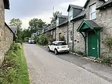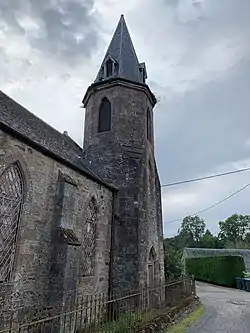 The disused Free Kirk, known as the Duff Memorial Church, was built in 1890 by the breakaway Free Church of Scotland to replace their original church built on the same site in 1856. No one now knows why a replacement was built so soon. In 1928 the Free Kirk amalgamated back into the Church of Scotland, with the two churches being used on alternate Sundays until the Duff Memorial finally closed in the 1950s. It was then used as an agricultural building and in the late 1990s the Village Hall committee had an agreement to acquire the building, restore it to its former glory and provide the village with a 21st-century Community Hall as part of the National Lottery Millenium Hall Scheme to mark the 21st century. However it was put on the open market and sold to a property developer who then found his plan for conversion to a house was impossible, so the old kirk still sits empty and disused and is rapidly deteriorating. The Free Kirk manse became a SYHA youth hostel which for 30 years was very popular with cyclists and hikers until it was sold in the 1950s as a private house. Opposite the Old Manse is a cottage which was originally the parish poorhouse.