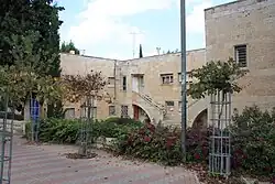 The imposing building across from the President's House in Kiryat Shmuel is the St Anthony Monastery, designed in 1936 by the Italian architect Antonio Barluzzi as a Franciscan school for Arab girls,[2] or Collegio Sant'Antonio in Italian. When World War II broke out, the British Mandatory authorities confiscated the building as enemy property.[2] It was fortified and turned into the Supreme Military Tribunal of the British Mandate. Members of the Lehi and Etzel Jewish underground were tried here, and some were sentenced to death.[2]