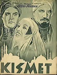 Kismet is a 1931 American drama film directed by William Dieterle and starring Gustav Fröhlich, Dita Parlo and Vladimir Sokoloff.[1] It was produced as a German-language version of the 1930 Warner Brothers film Kismet.