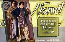 Kismet (transl. Fate) is a 1943 Indian drama film, directed by Gyan Mukherjee, written by Mukherjee with Aghajani Kashmeri,[2] and produced by Bombay Talkies, during the Second World War,[1] while it was in a succession battle between Devika Rani and Sashadhar Mukherjee after owner Himanshu Rai's death. The film was the first big hit in the history of Bombay cinema, and the first blockbuster in Indian cinema.[5][6]