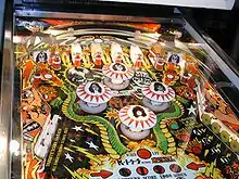 Kiss-themed pinball machines were produced by Bally in 1979[1] and Stern in 2015.[2] There are also some pinball machine conversion kits,[3][4] a Kiss pinball machine prototype[5] and a Kiss pinball video game.