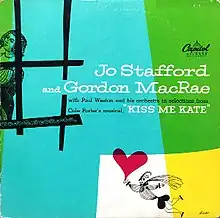 Kiss Me, Kate is a 1949 album of songs from the musical of the same name recorded by American singer Jo Stafford and actor and singer Gordon Macrae. It was released January 1, 1949 on Columbia Records.[2][3] In its record review column, Saturday Review called it the best album of the show's songs outside the original cast album.[4]