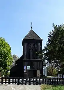 Kiszkowo, Greater Poland. Wooden church of Saint John the Baptist from 1733 with a brick burial chapel from 1695.