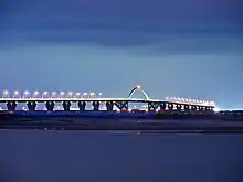 A 2.1 km toll-free bridge connects the island to the Higashikyūshū Expressway via the Kanda-Kitakyushukūkō interchange.