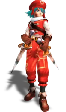 Kite, a Twin Blade, is the main character of the .hack// series. In .hack//Infection, Kite's friend Orca invites him to play The World, in which they encounter a girl called Aura who is being chased by a humanoid monster. Aura tries to entrust Orca with an item called the Book of Twilight but the monster attacks him, crashing The World's servers. Kite's player discovers Orca's player Yasuhiko has fallen into a coma after the attack and resolves to discover the cause.[12] Soon after, Skeith places Yasuhiko into a coma and Kite receives the Twilight Bracelet (黄昏の腕輪, Tasogare no Udewa) from the A.I. Aura, allowing him to Data Drain, a hacking skill. Following Aura's leads, Kite defeats the various Phases and Cubia, the alternative side of the bracelet, destroying the bracelet. Aura gives Kite a new bracelet called the Dawn Bracelet. The Book of Twilight then activates, altering Kite's character data and giving him the Twilight Bracelet. He uses its Data Drain to correct the swordsman's code, allowing Balmung to kill it. This causes a viral infection that is spreading through the game.[13]