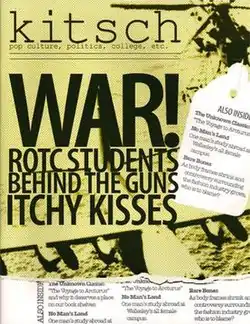 Kitsch is a semesterly magazine produced by students of Cornell University. It prints feature journalism, fiction, opinions, art, and miscellaneous shorter pieces; one of its taglines reads: "Where fact and fiction meet." The relatively unrestricted scope of the publication ensures that any thought-provoking topic may be considered for a feature.[1]