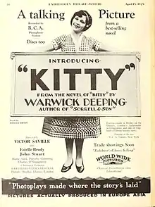 Kitty is a 1929 British drama film directed by Victor Saville and starring Estelle Brody and John Stuart. The film was adapted from the 1927 novel of the same name by Warwick Deeping and marked the third co-star billing of Brody and Stuart, who had previously proved a very popular screen pairing in Mademoiselle from Armentieres (1926) and Hindle Wakes (1927).